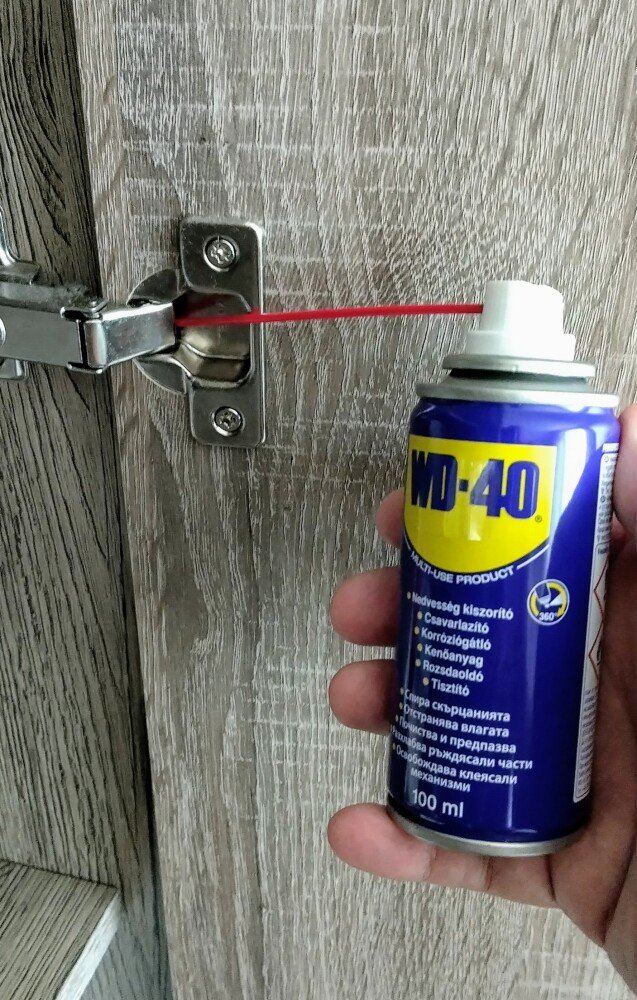 За да се затварят добре, гладко, плавно и безшумно вратите на гардероба е необходимо пантите да са регулирани правилно. След това е добре да са фино смазани със смазката WD40. Така ще има тишина и спокойствие и няма да се блъскат врати.