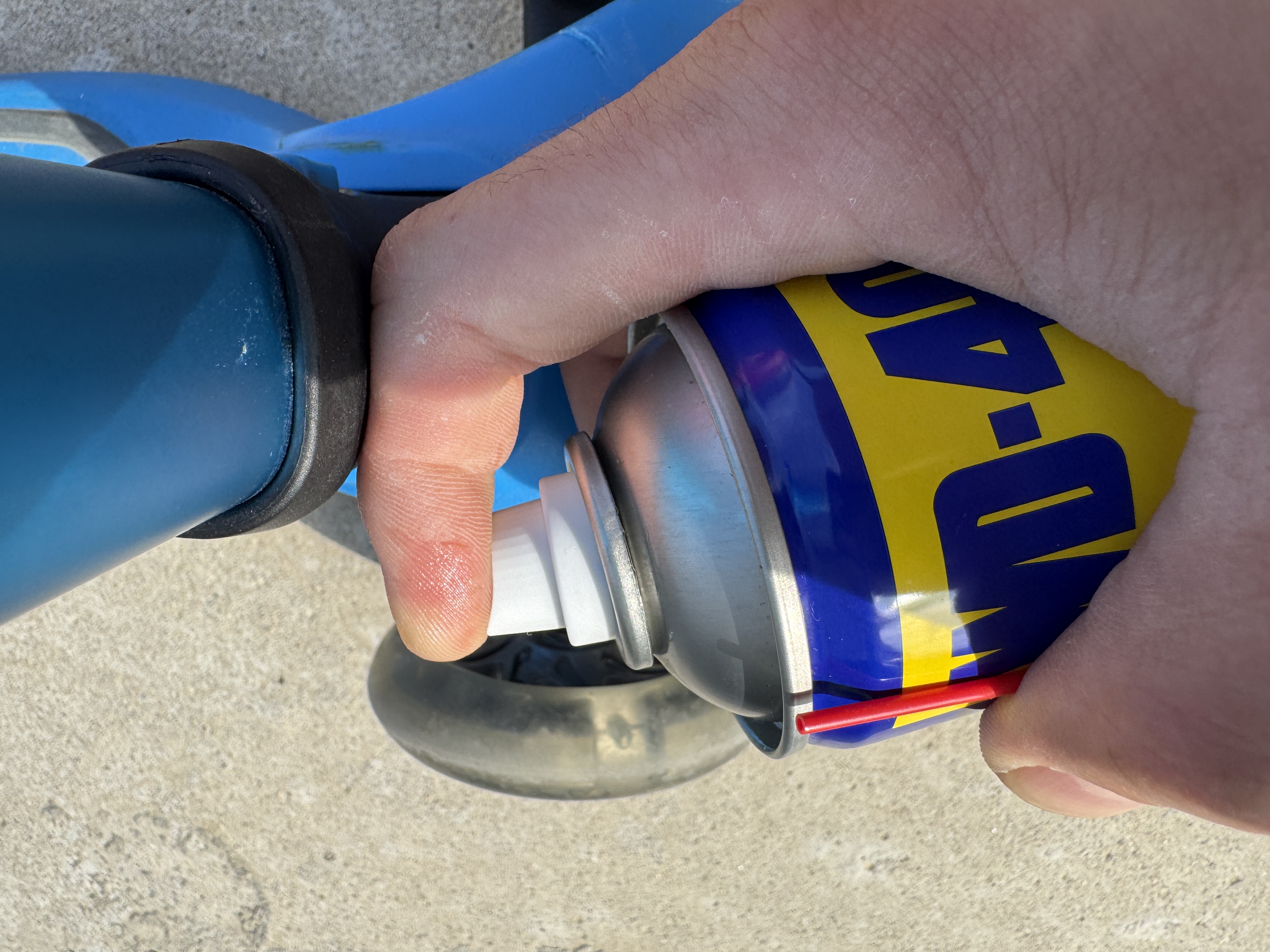 Настройваме пръскалото на спрея без сламка за отвеждане на wd-40, за да имаме по-голяма площ на работа на спрея
