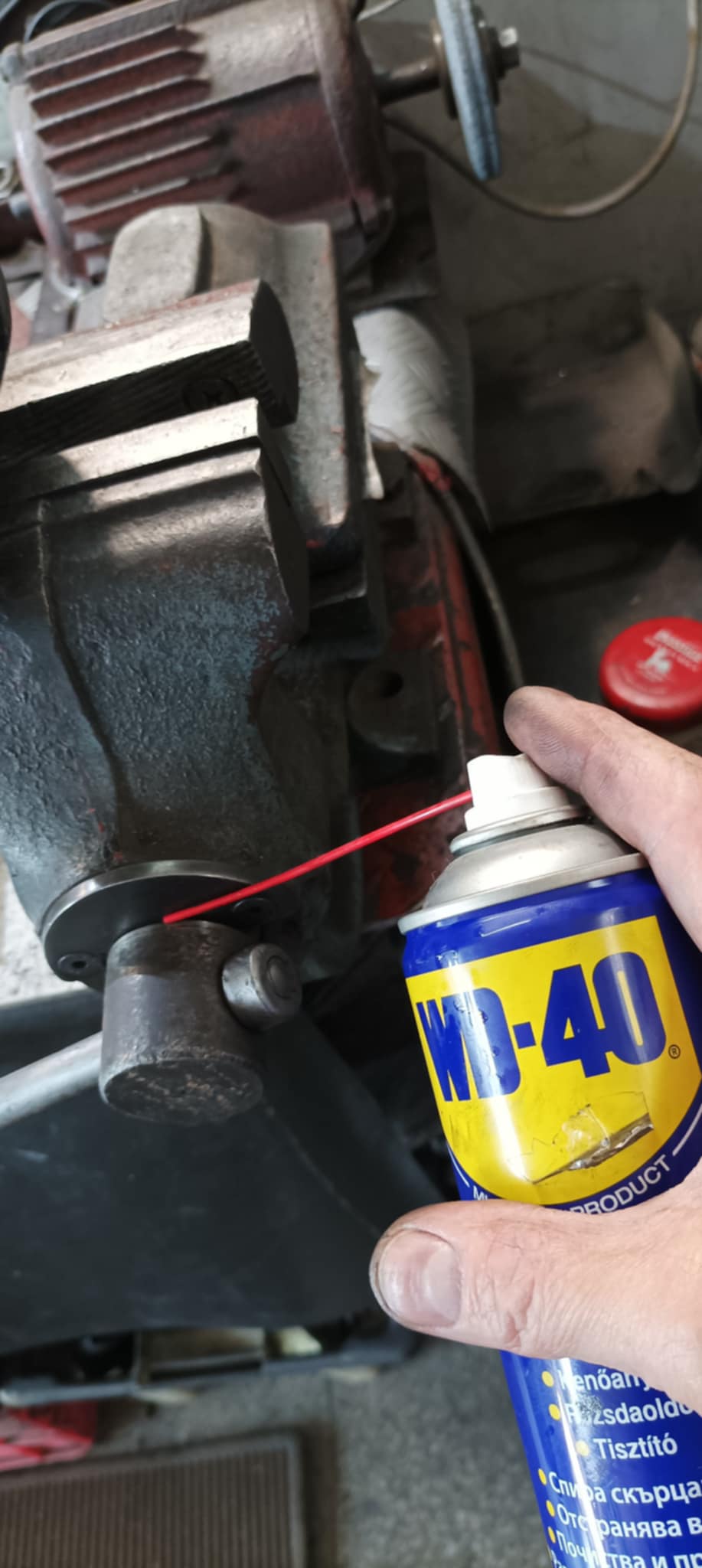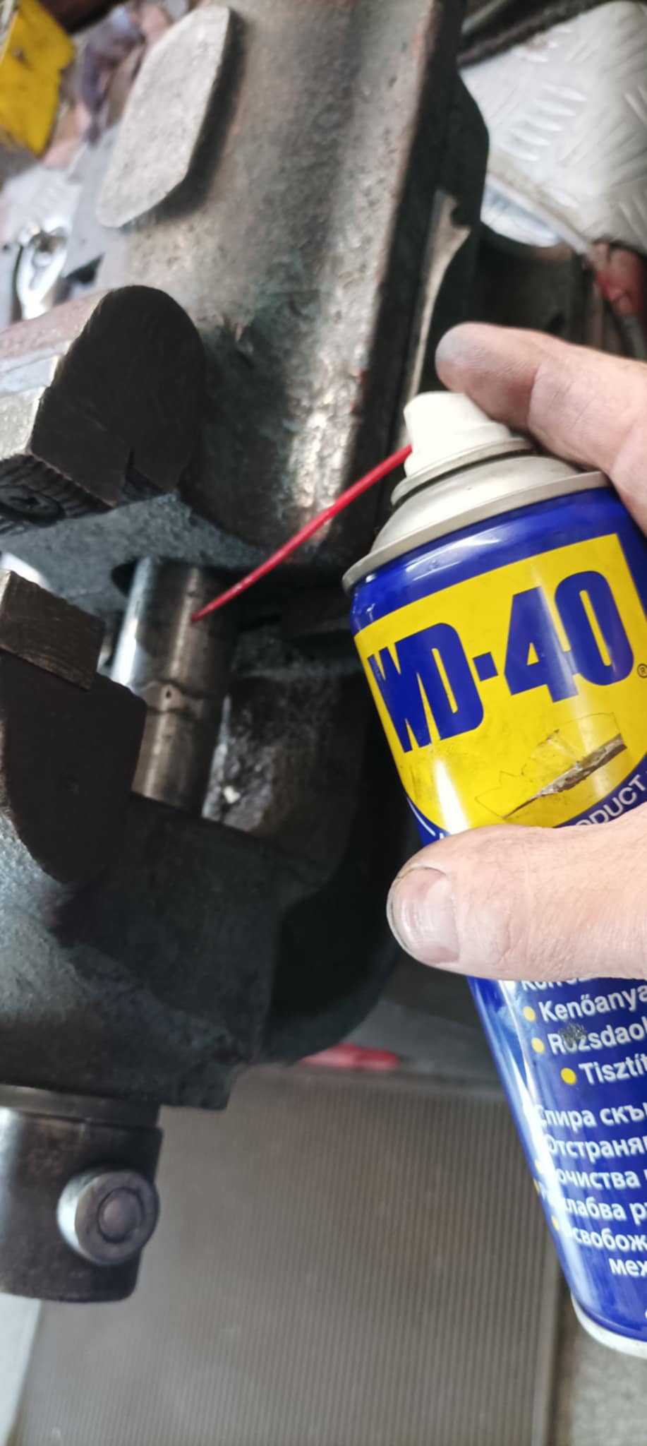 За да поддържам менгемето в сервиза, редовно почиствам всички движещи се части от натрупани стружки и мръсотия, след което нанасям WD-40 върху винта и плъзгащите механизми. Това помага за предотвратяване на ръжда, осигурява плавно движение на челюстите и удължава живота на инструмента.