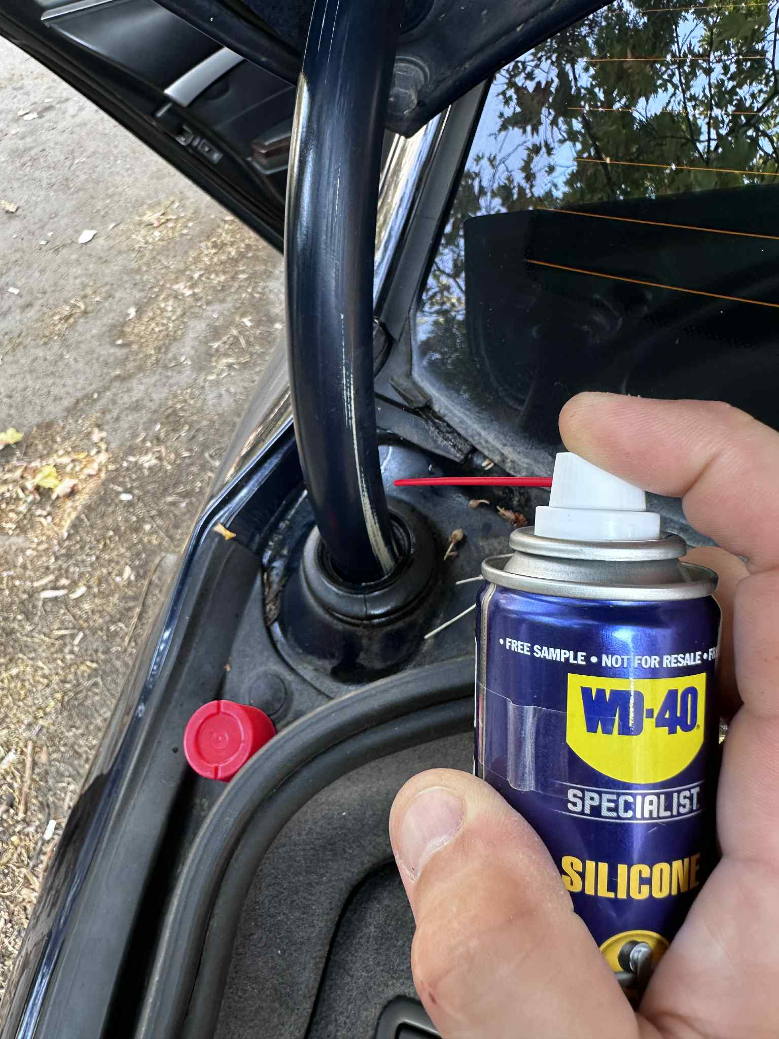 Смазване на механизмите на багажника и техните гумени уплътнения,със WD-40 Специалист със силиконово покритие!