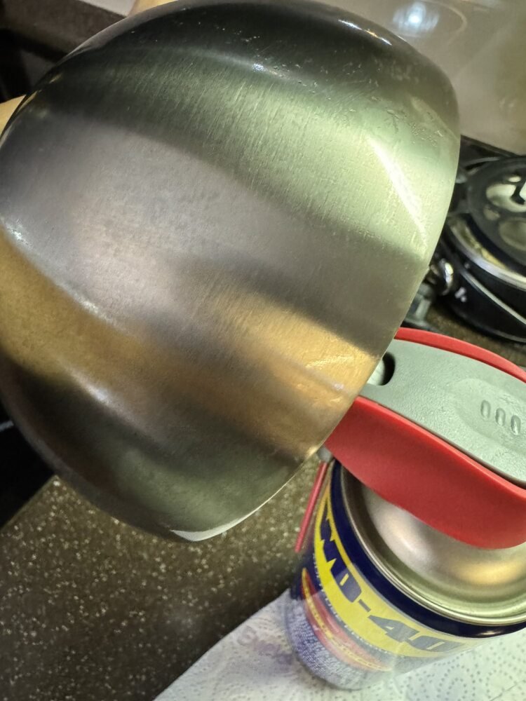 Със сигурност няма да останете изенгенадени, но ние полираме всичко що е от инокс с WD-40. Този капак беше доста изоставен и едно малко количество от WD-40 свърши чудесна работа.