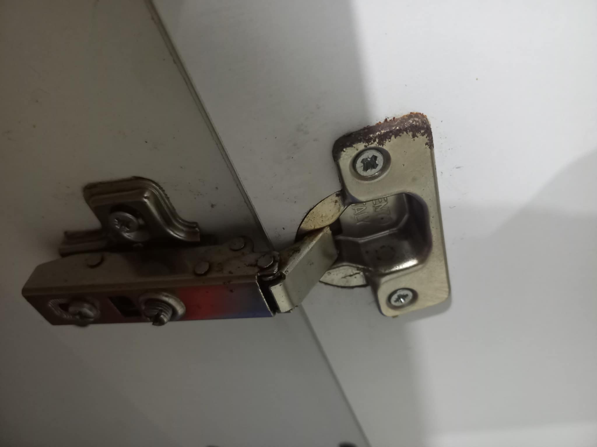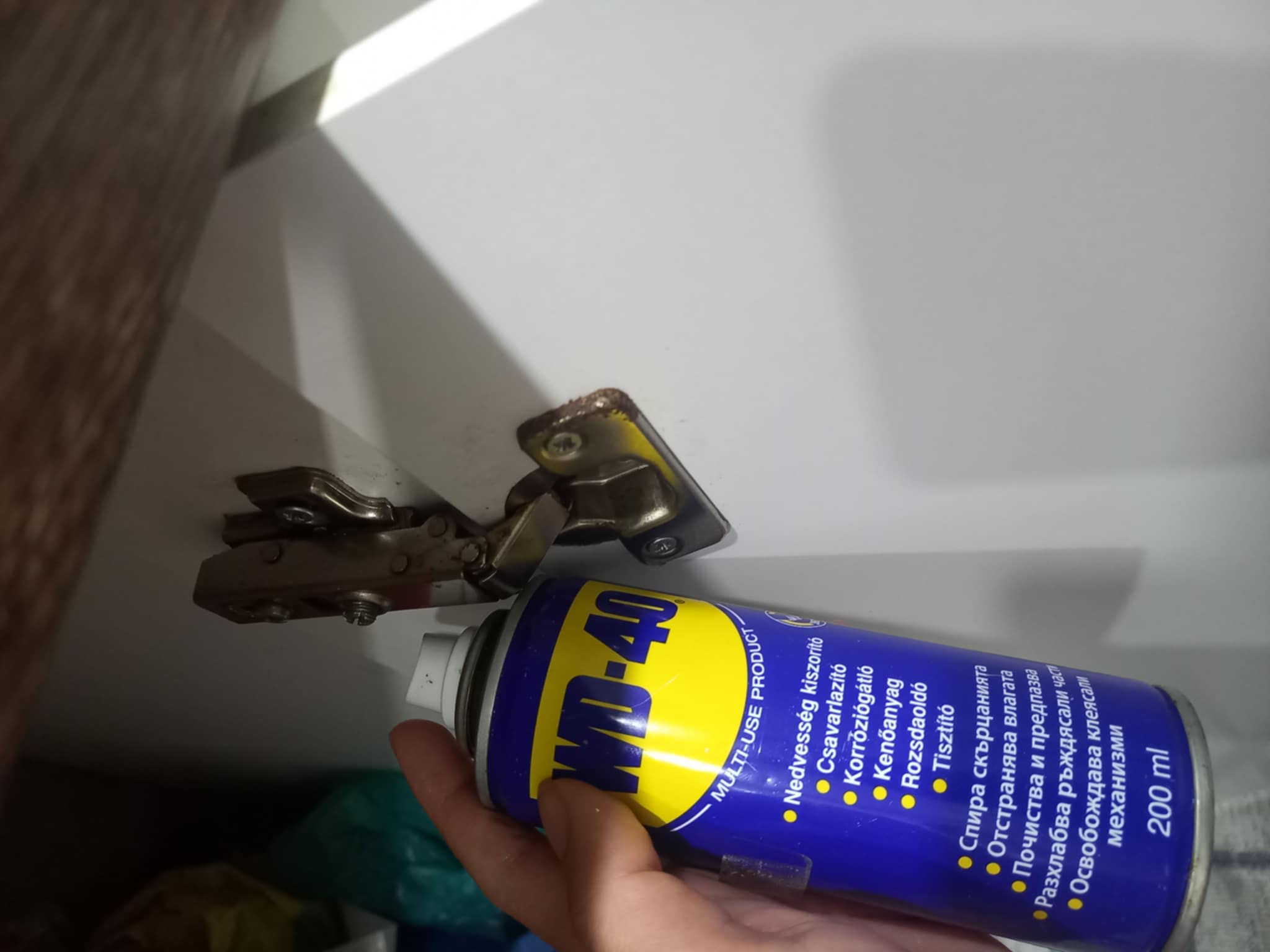 Скърцаща и ръждясала панта. Напръскваме с WD-40. Всичко е като ново.