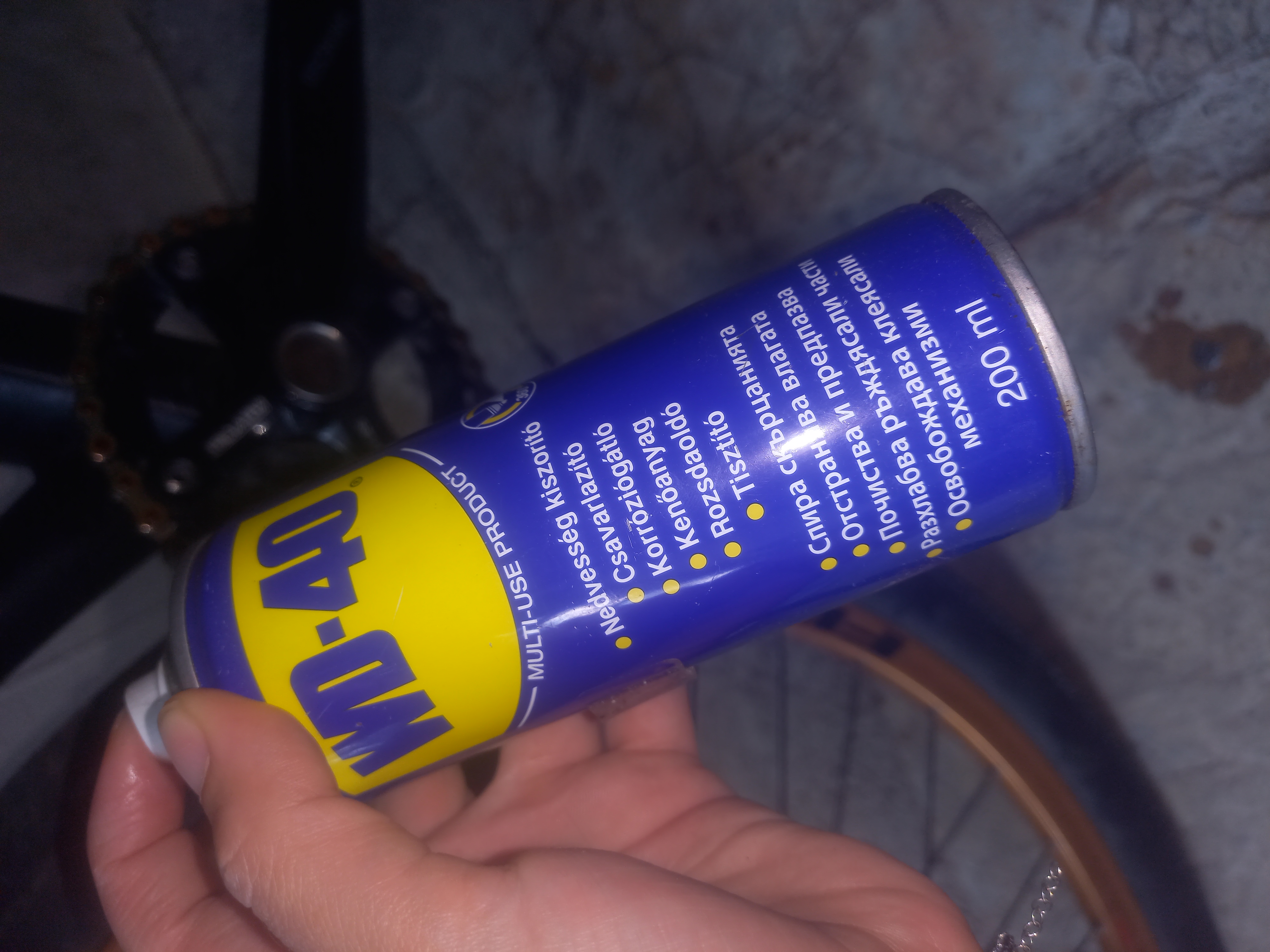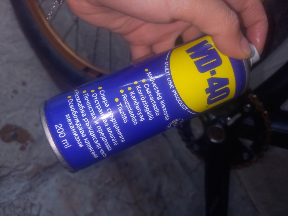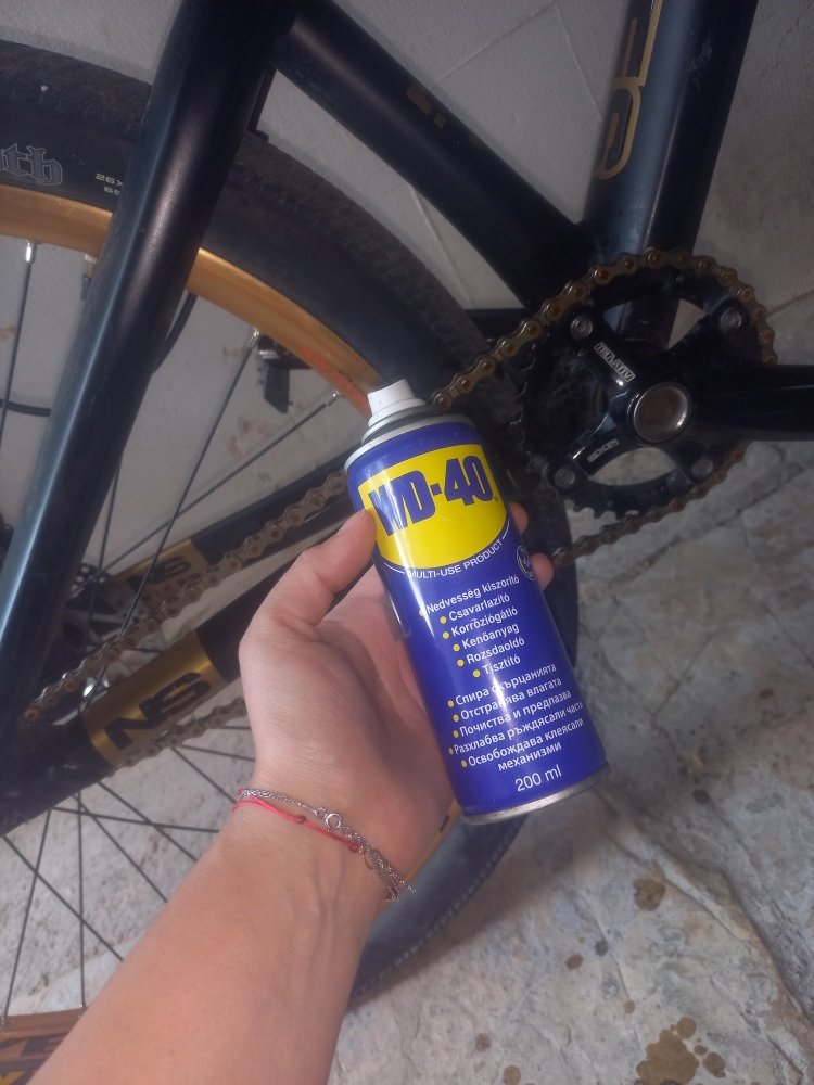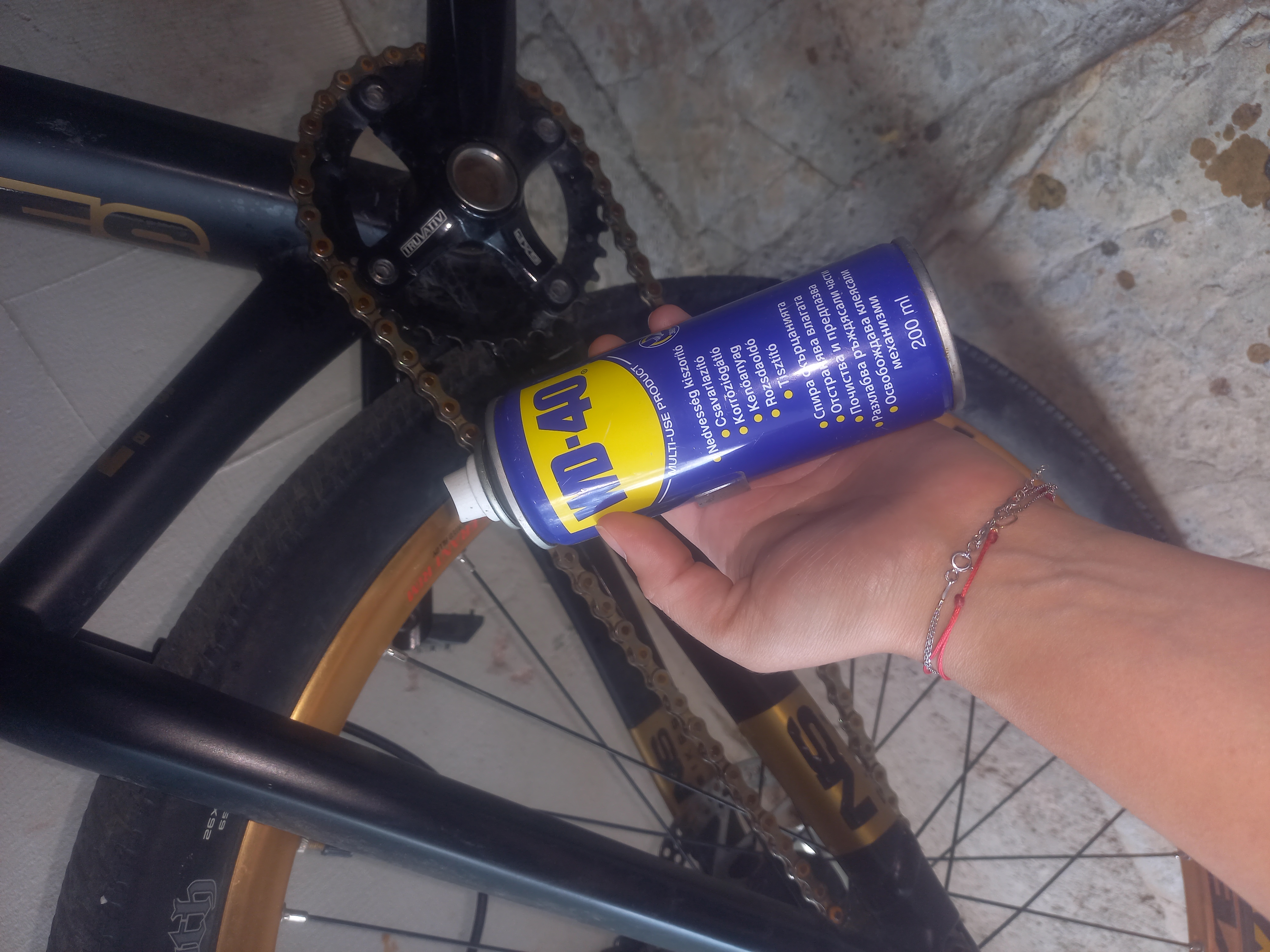 Премахване на ражда с WD-40 от веригата на велосипеда