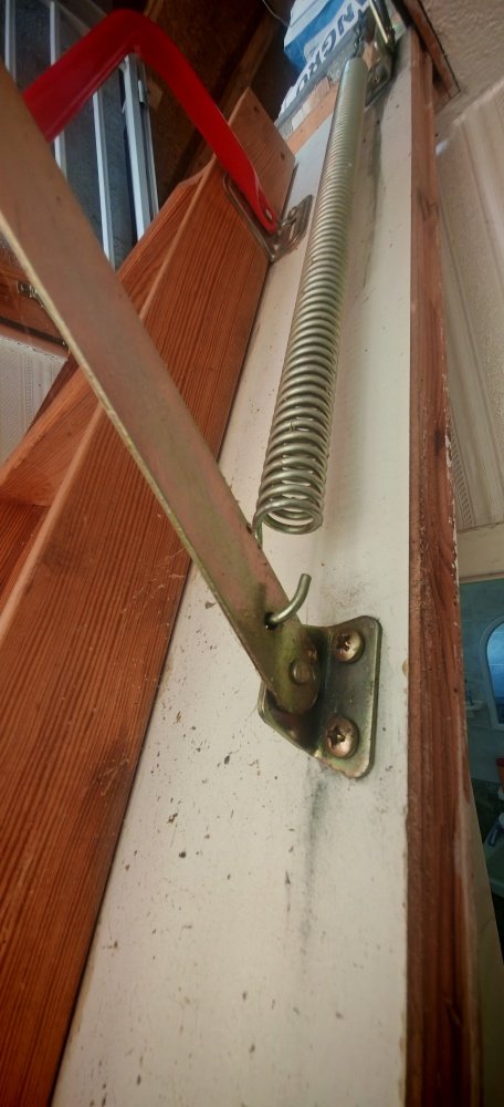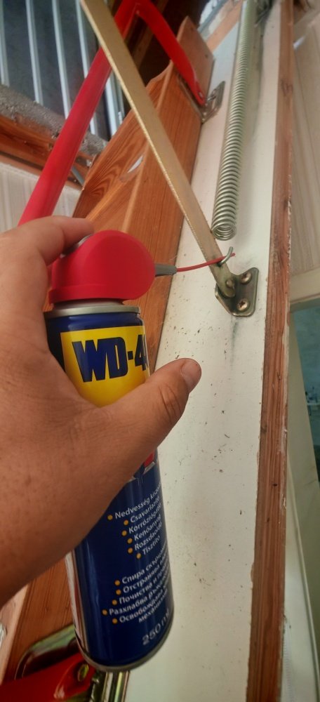 Пружината на стълбата се беше разскърцала и станала по твърда ,след няколко напръсквания с WD -40 нещата коренно се промениха ,сега всичко работи както трябва!