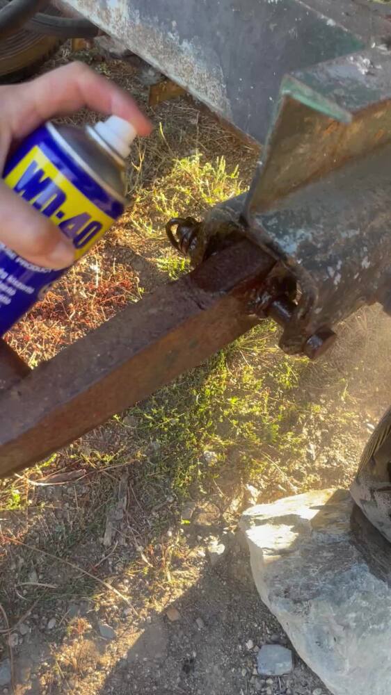 Ремаркето скърцаше при всяко помръдване. Извозва отпадъци десетки години и все още не е за изхвърляне! С WD-40 звуците при движението му вече са по-приятни!