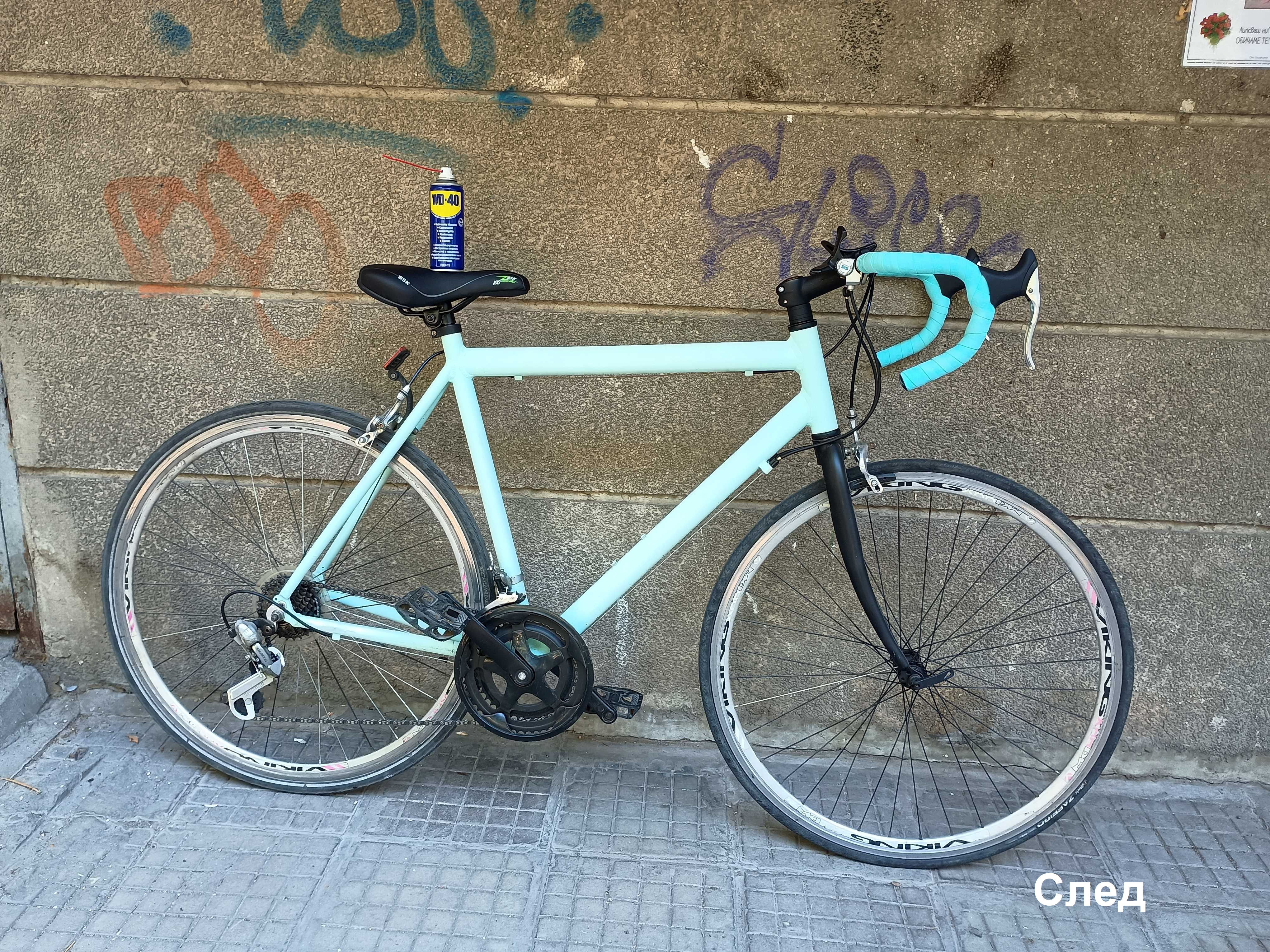 Подмених жилата и броните, които се износват безвъзвратно с времето. Навих нов гюделин на кормилото в подходящ цвят. Накрая настроих системите на велосипеда и направих финалното смазване за по-прецизна и безаварийна работа.
