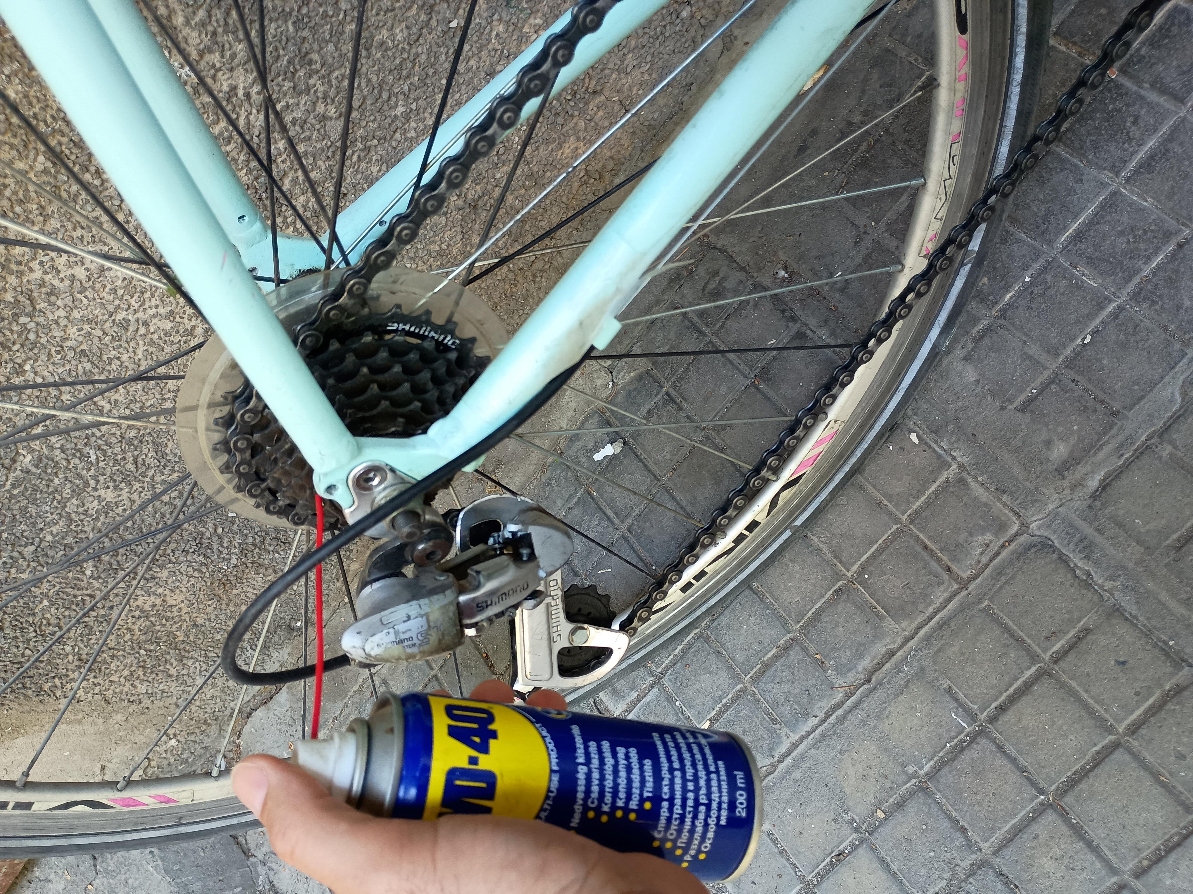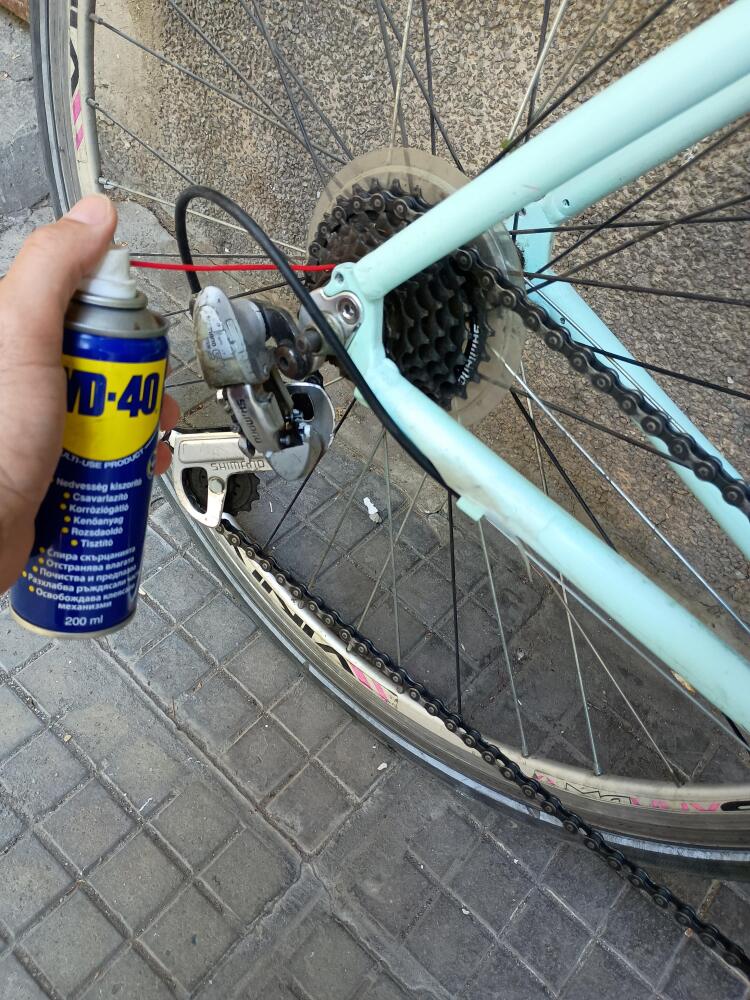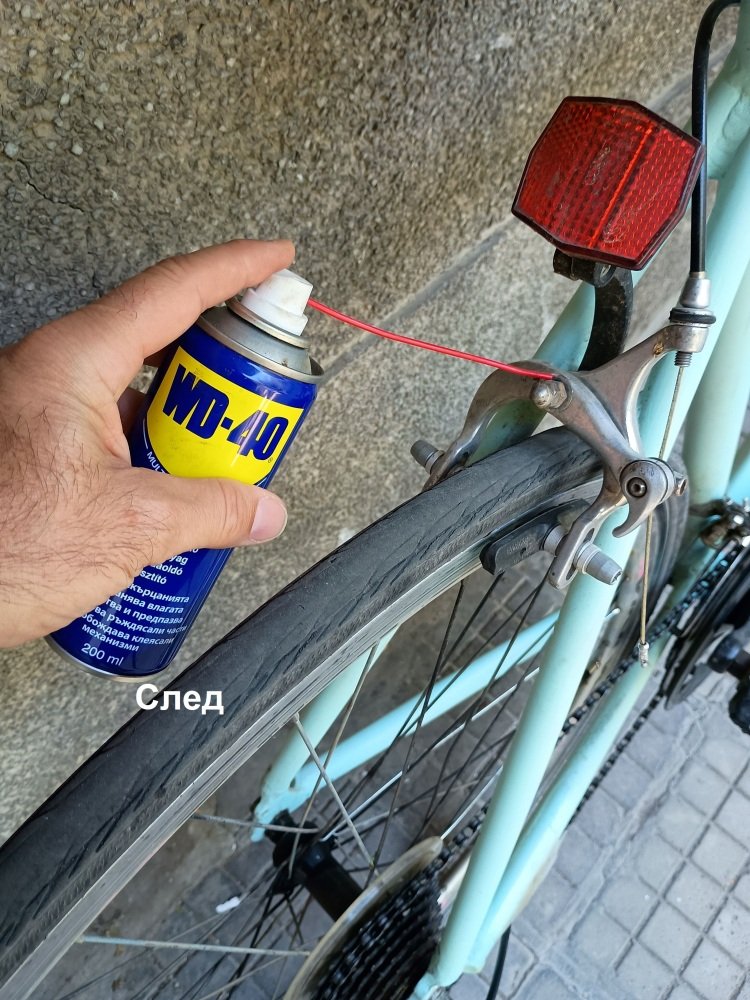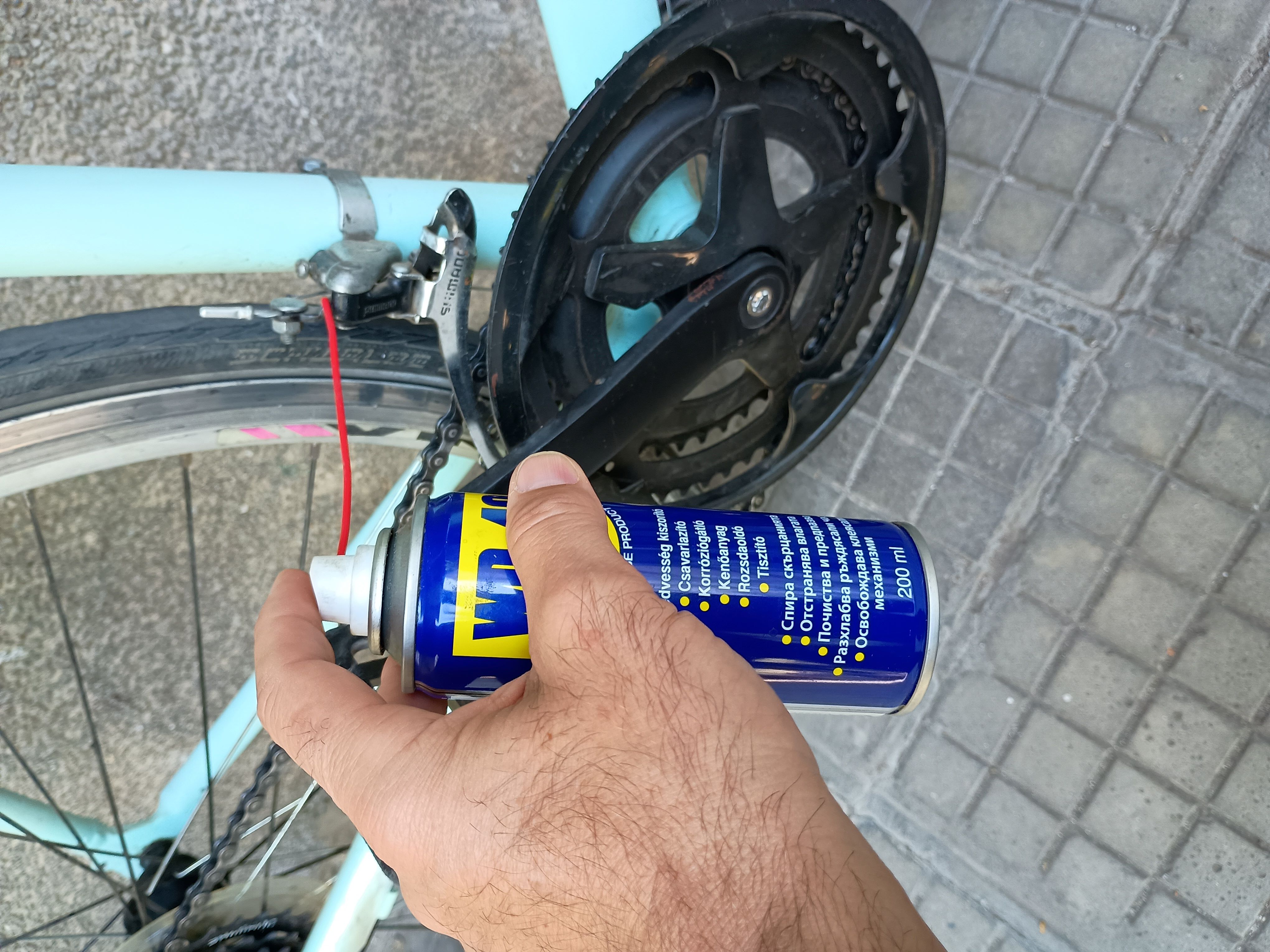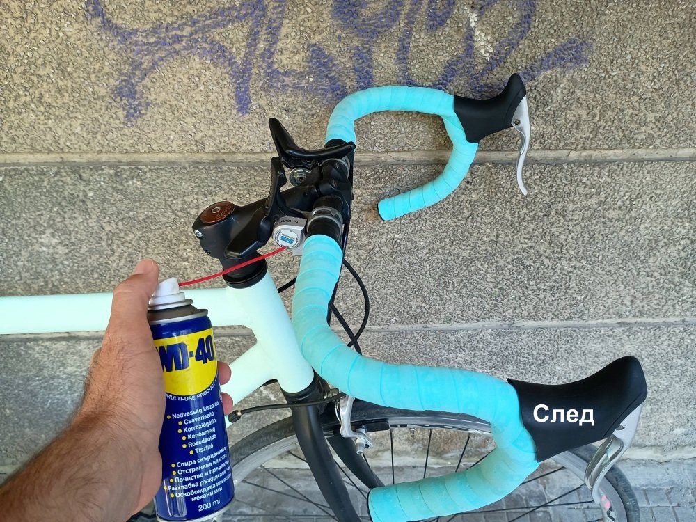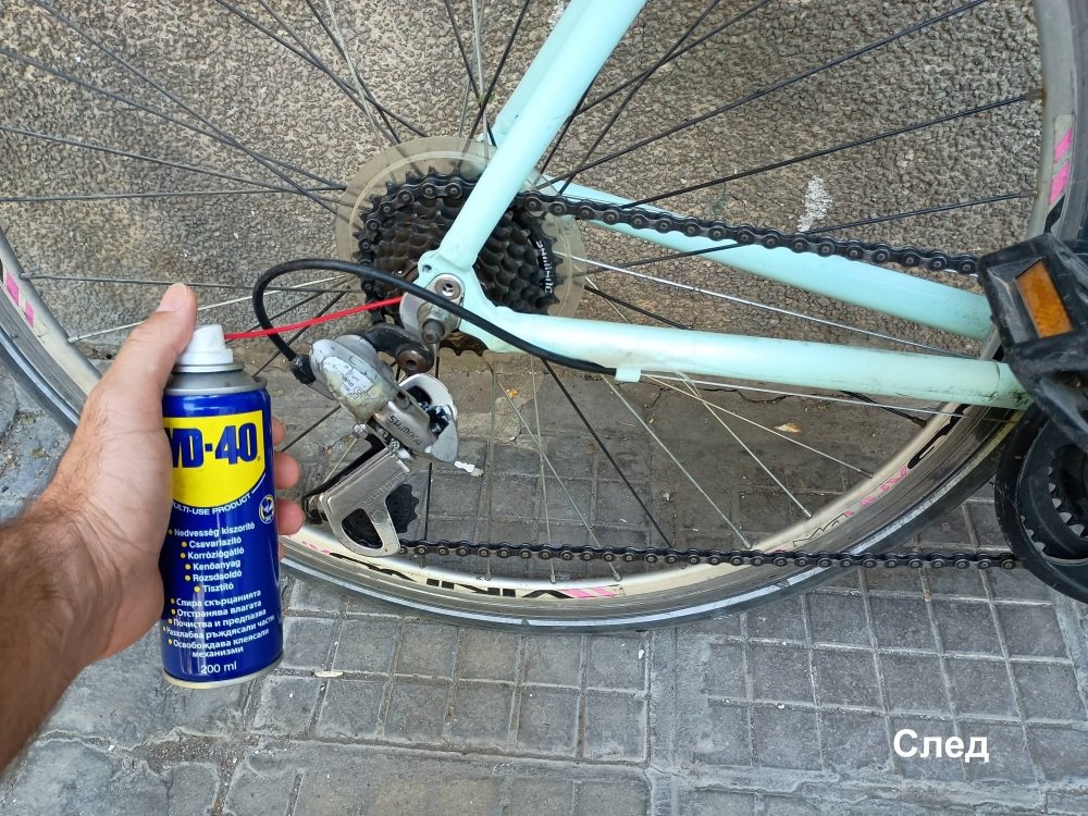 Това беше етапа, в който WD-40 помогна най-много. В него се разглобяват на части венците, касетата, централното движение, веригата и дерайльорите. След дълбоко почистване с WD-40 се сглобяват отново, монтират на рамката и смазват.