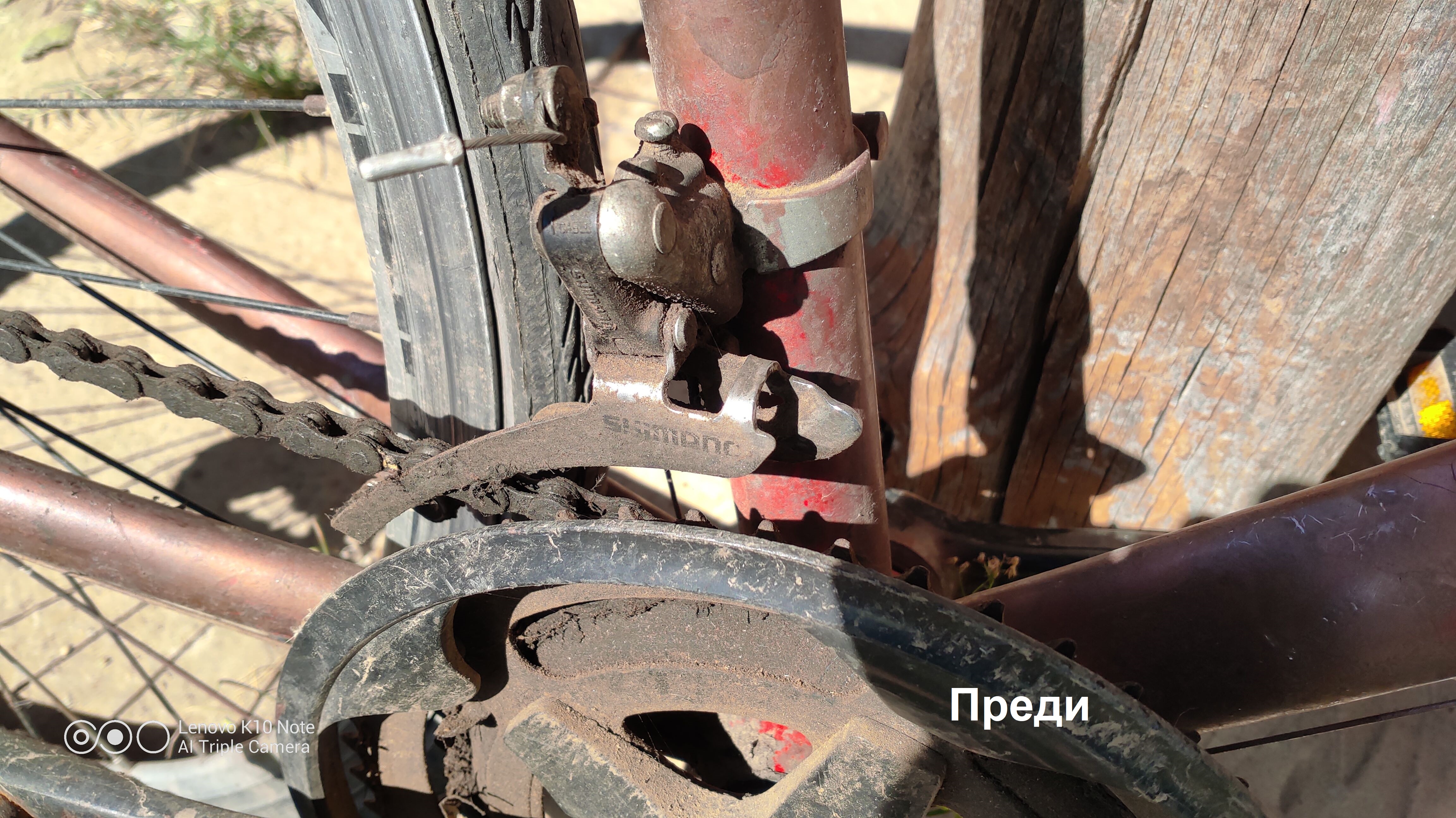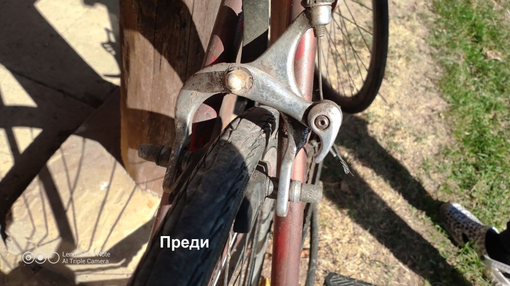 Тук разглобих и почистих спирачките на велосипеда. След това ги монтирах на рамката и смазах около осите.