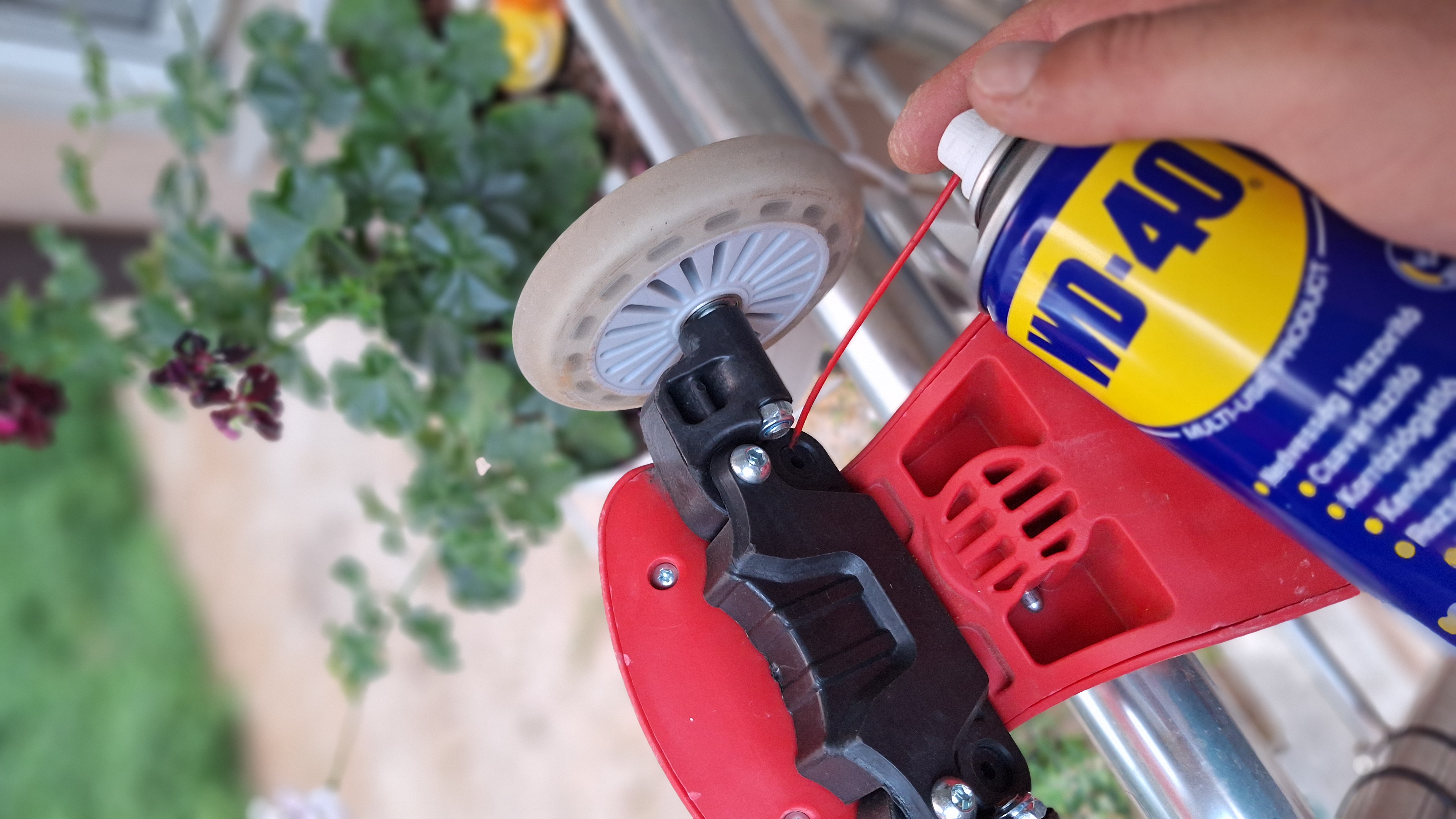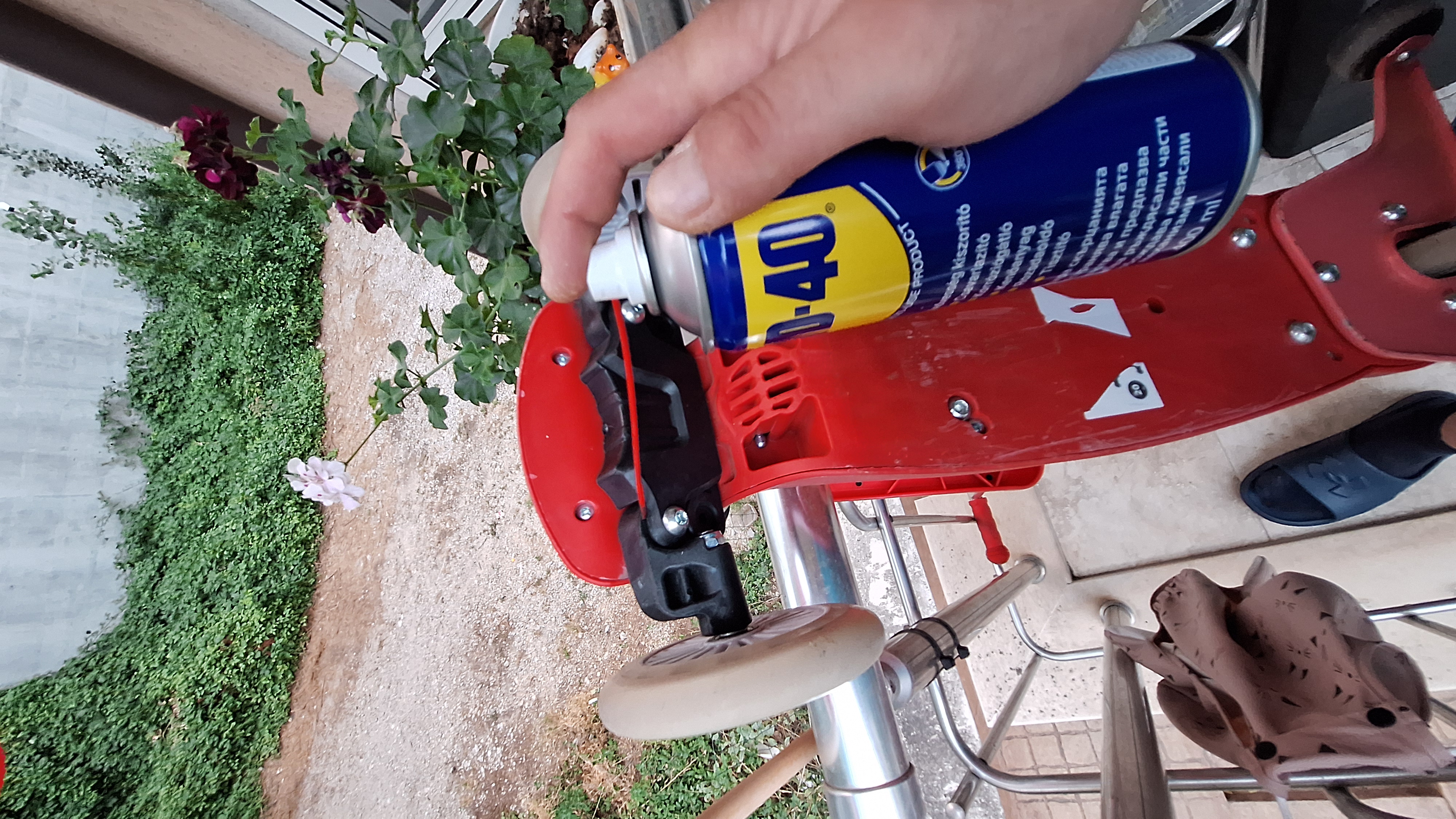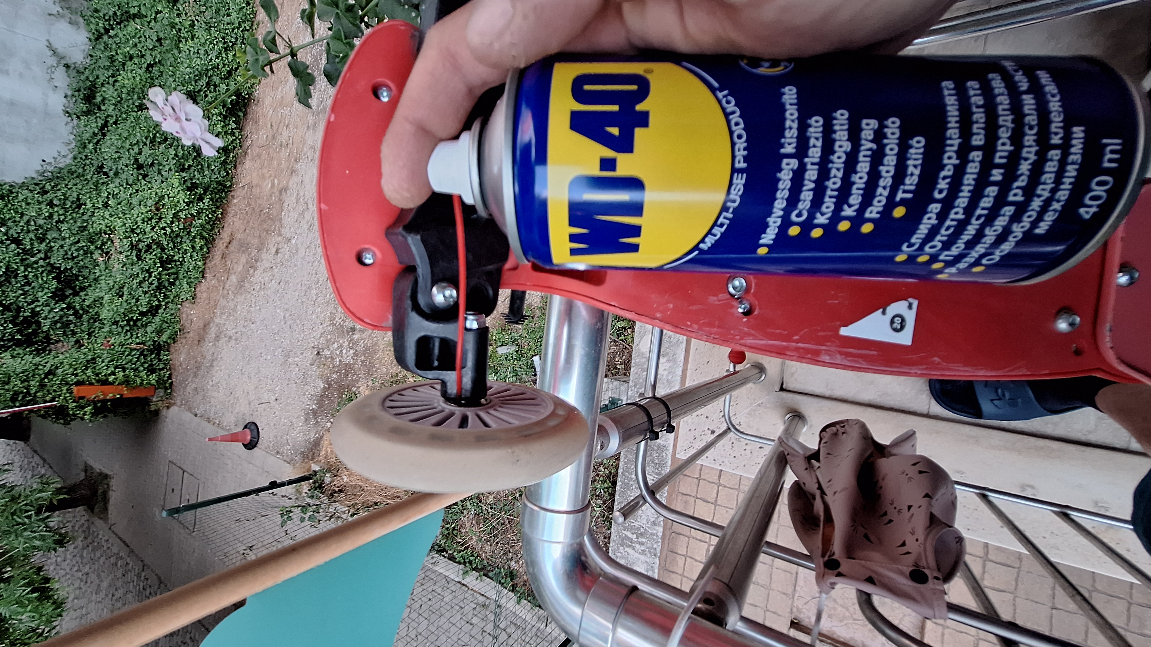 Смазах лагерите и кормилото на бебешката тротинетката на детето ми с WD40 и се възстанови гладкостта в движението и управлението и. След близо 1 год. определено вече имаше нужда...