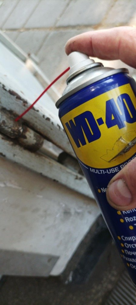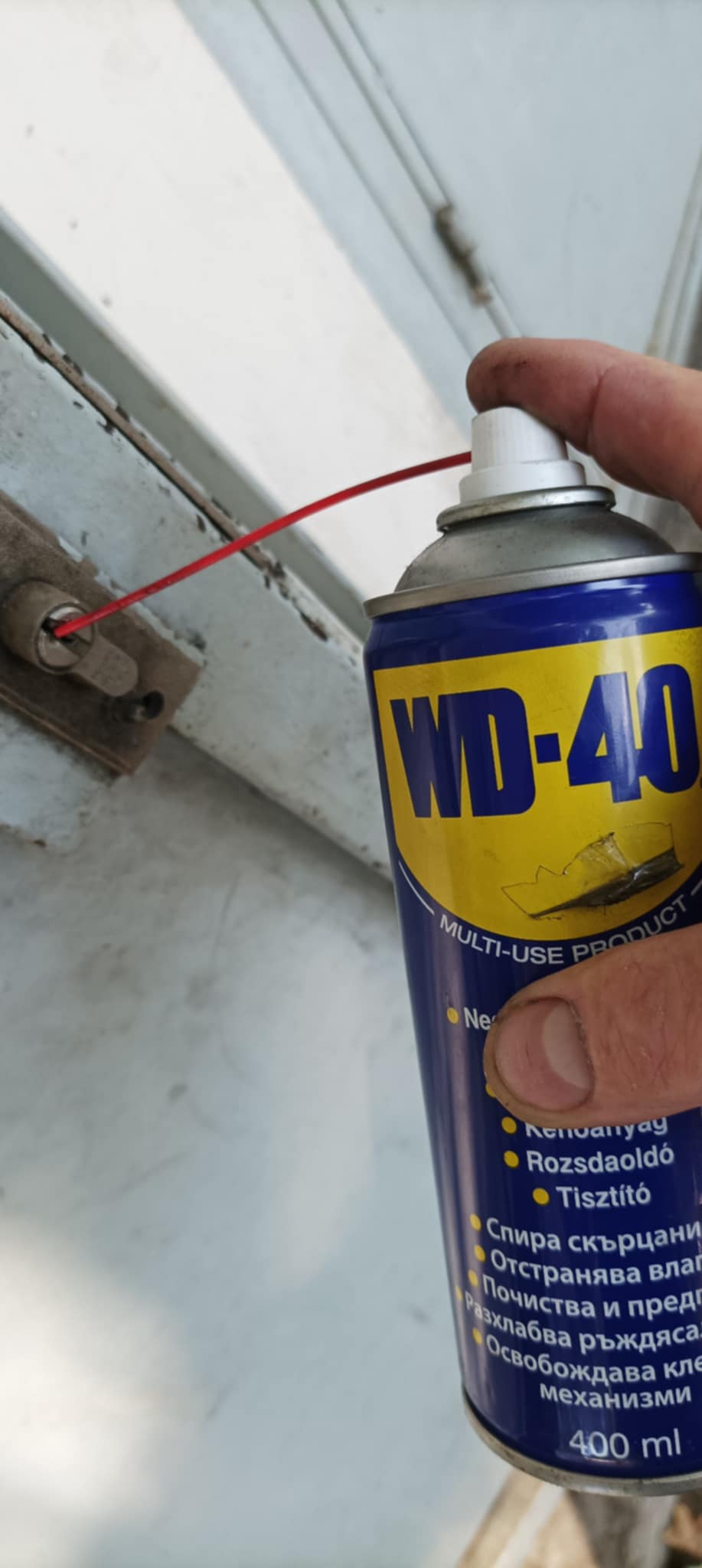 Стара метална врата, която има нужда от постоянно смазване поради натрупалата се ръжда, мръсотии и цялостна амортизация с времето. С помощта на малко WD-40 си е годна за употреба, не изглежда особено добре, но поне не заяжда, не скърца и си върши работата!