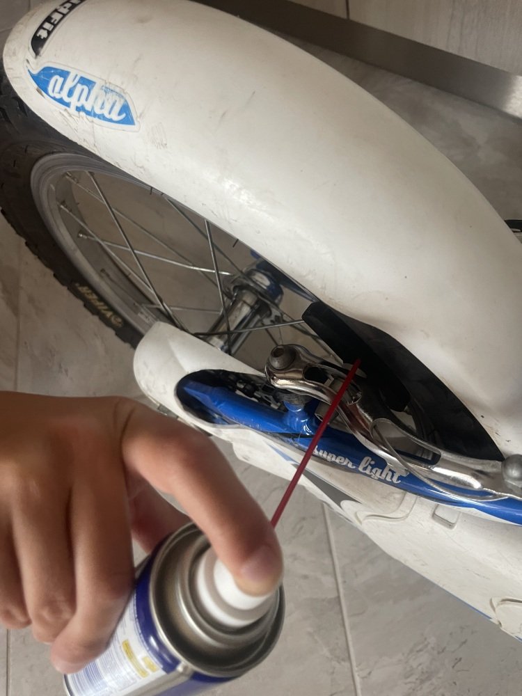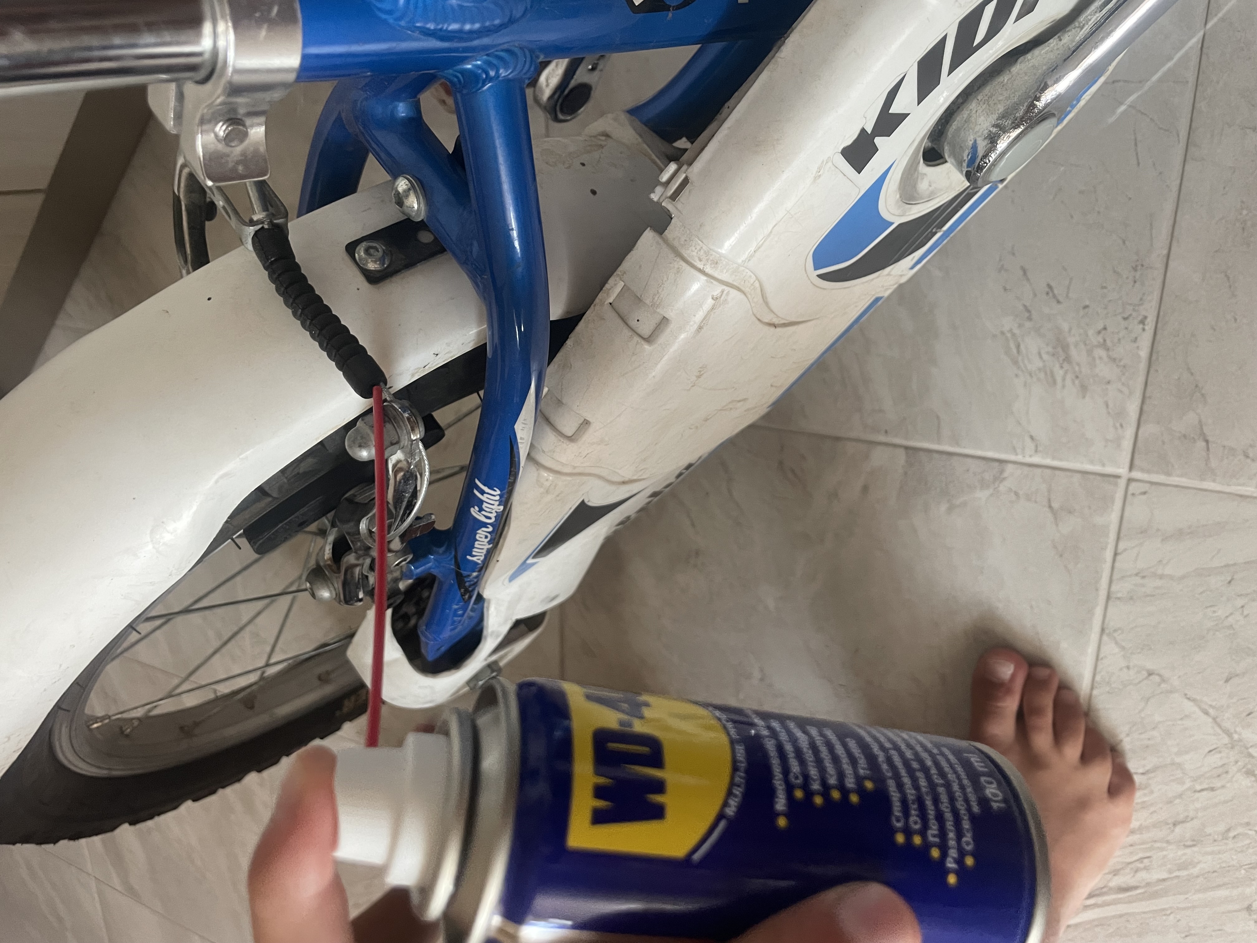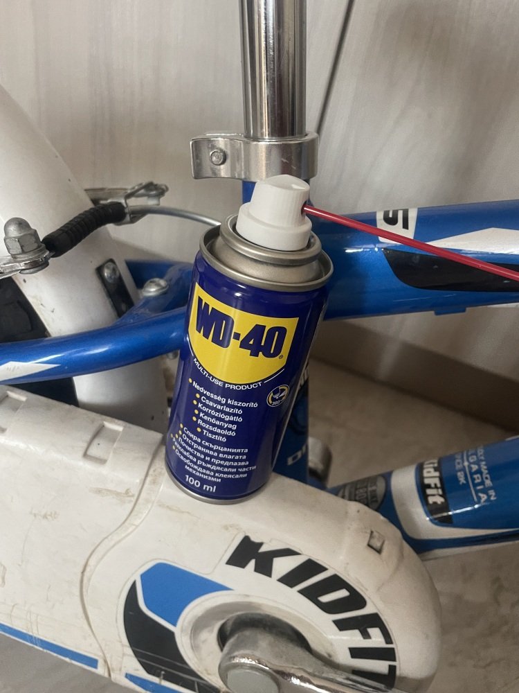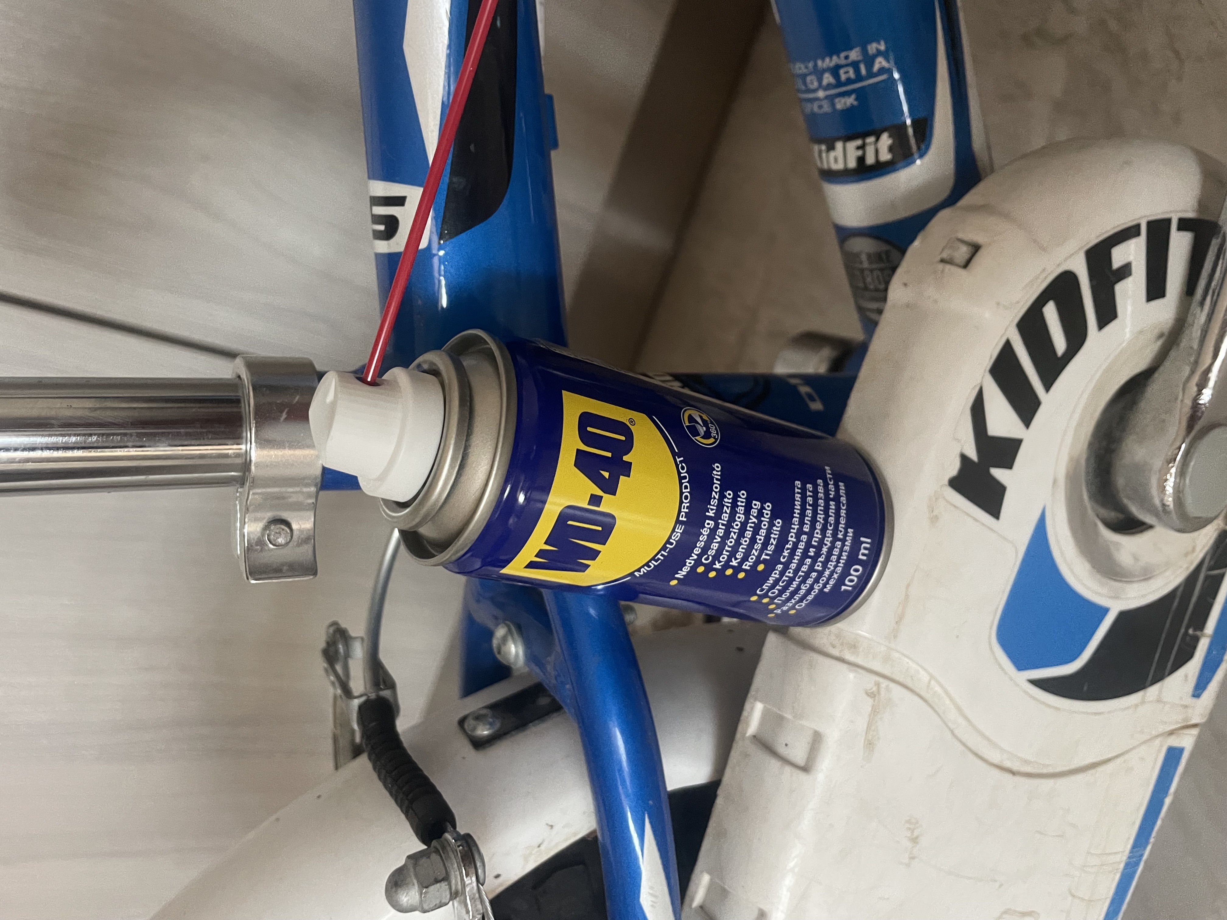 Закарахме велосипеда на ремонт - смениха гумите, ремонтираха спирачките, уж казаха, че са смазали и веригата. Като си го прибрахме се чуваше тук-там скърцане. С WD-40 коригирахме и това!
