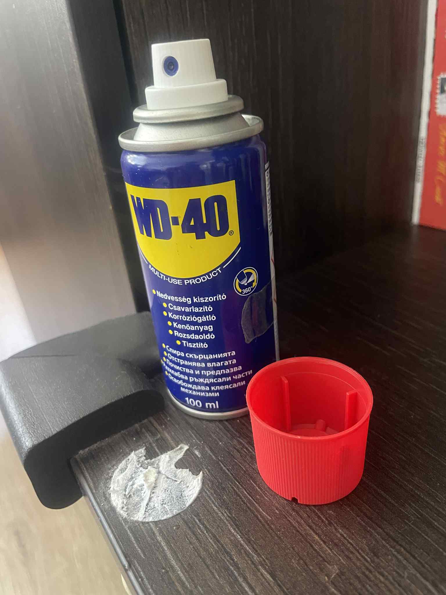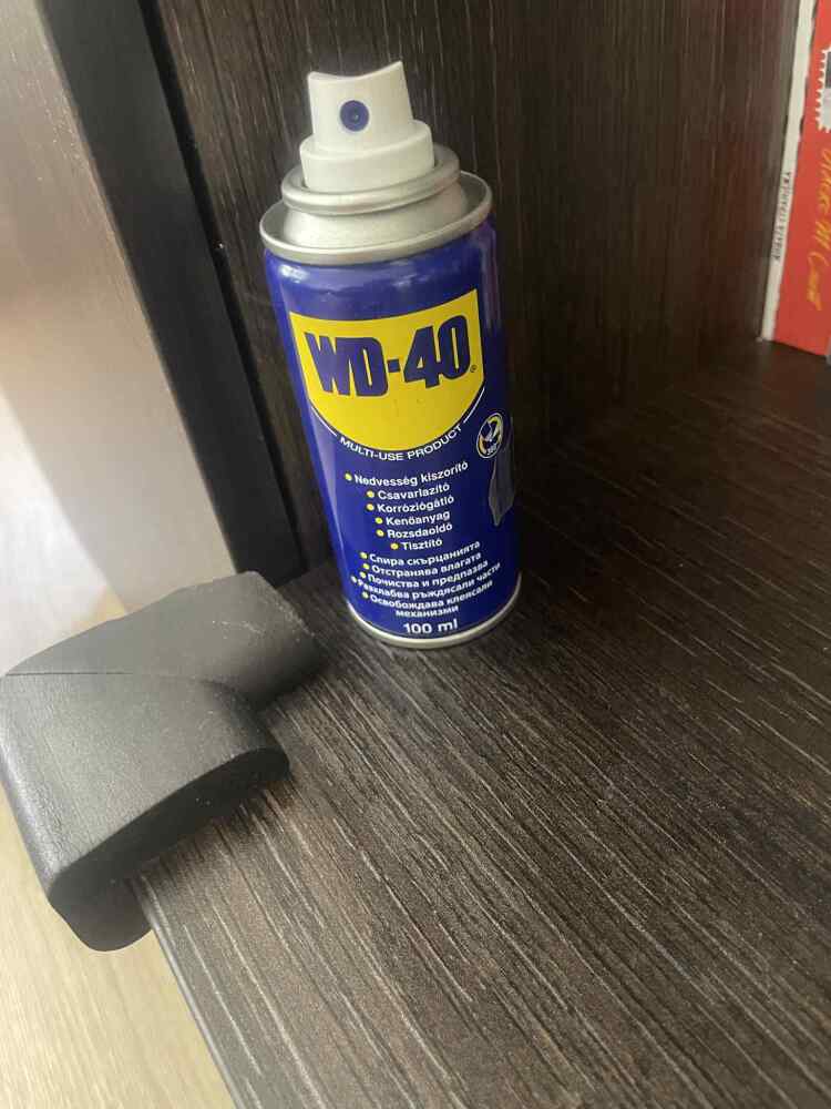 Доскоро използвах WD-40 за смазване и почистване на ръжда, но ми се наложи да премахна старо лепило, което беше останало по повърхността на мебел. Напръсках, изчаках не повече от 2-3 минути и само със салфетка лепилото падна бързо и в момента няма и следа.