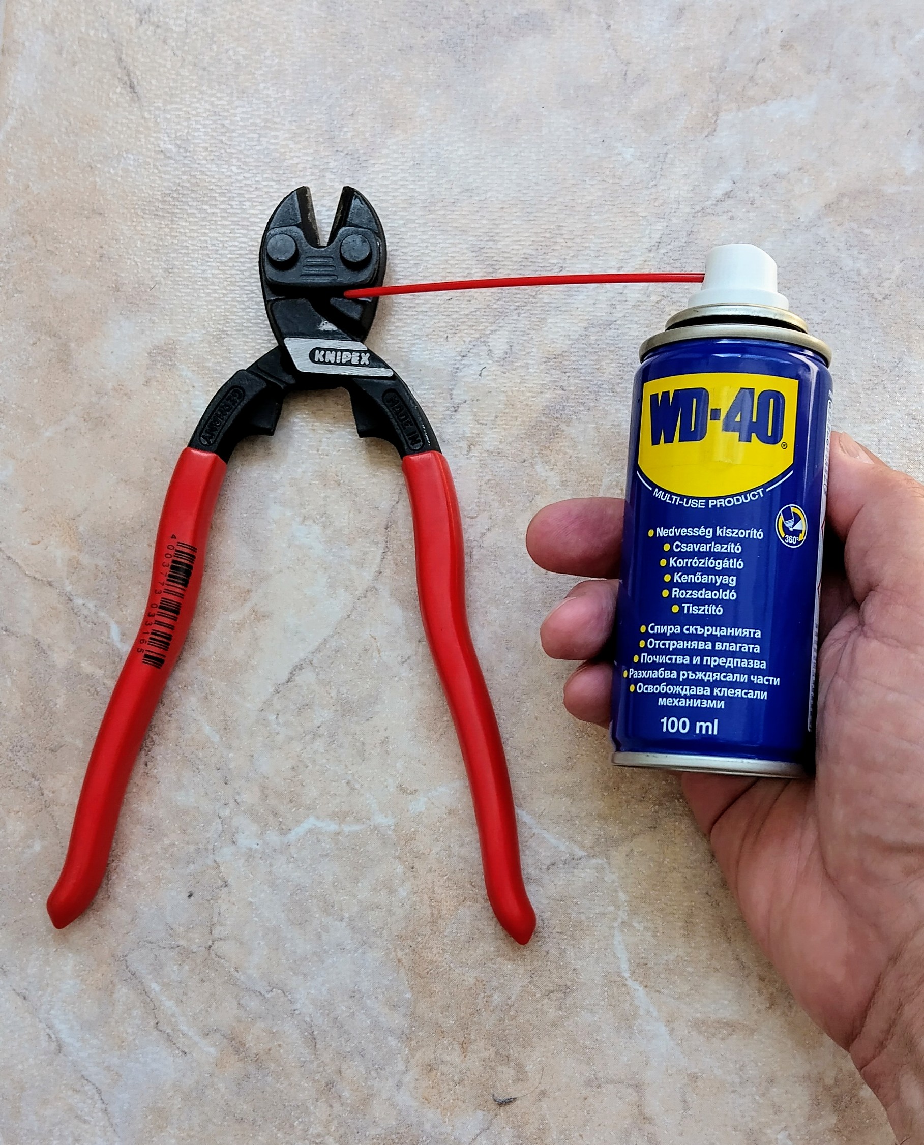 WD40 + KNIPEX = Очаквано добра комбинация! Дори и най-добрите резачки, като тези на KNIPEX се нуждаят от грижа. Това става лесно и сигурно с WD40, като смазването им осигурява дълги години безпроблемна работа.